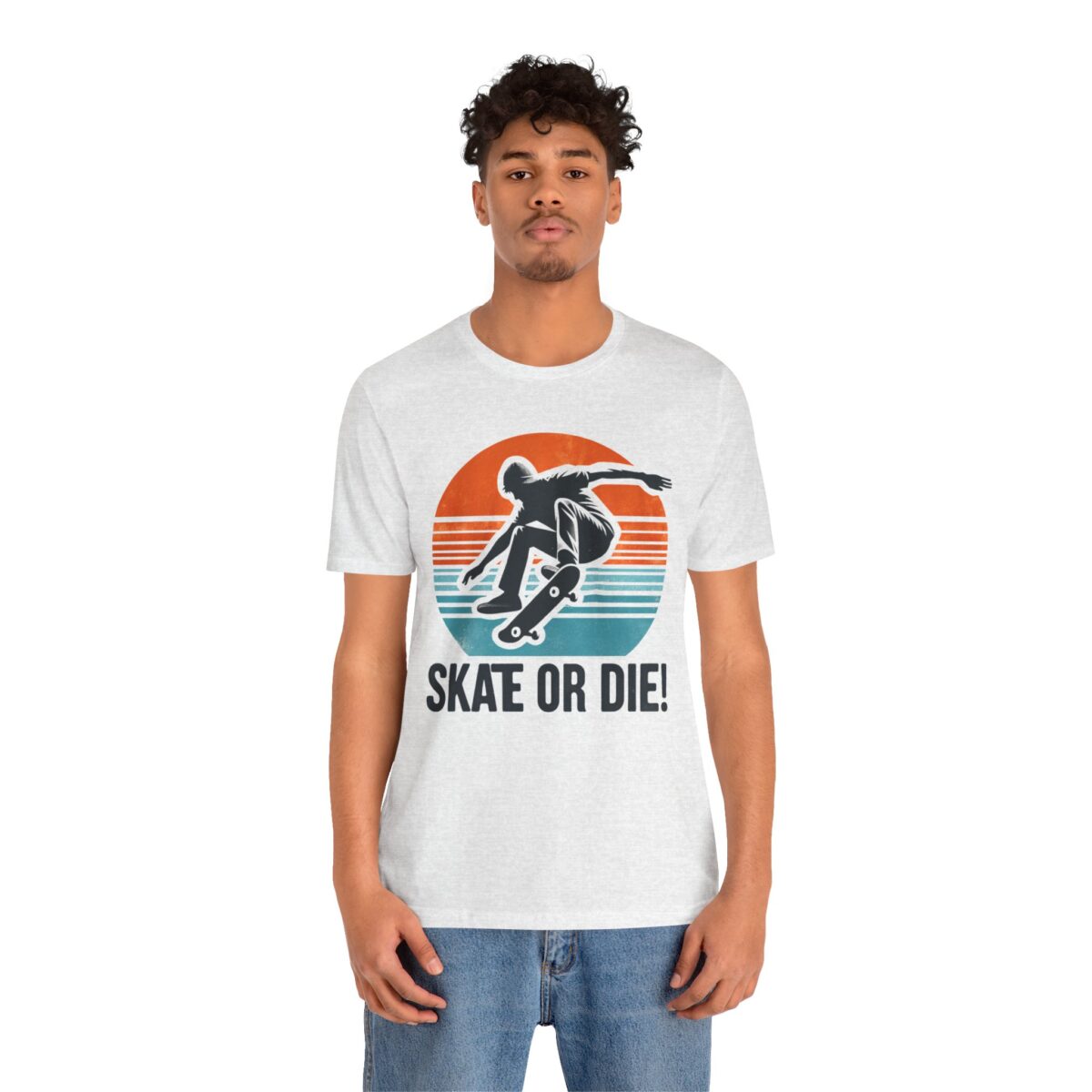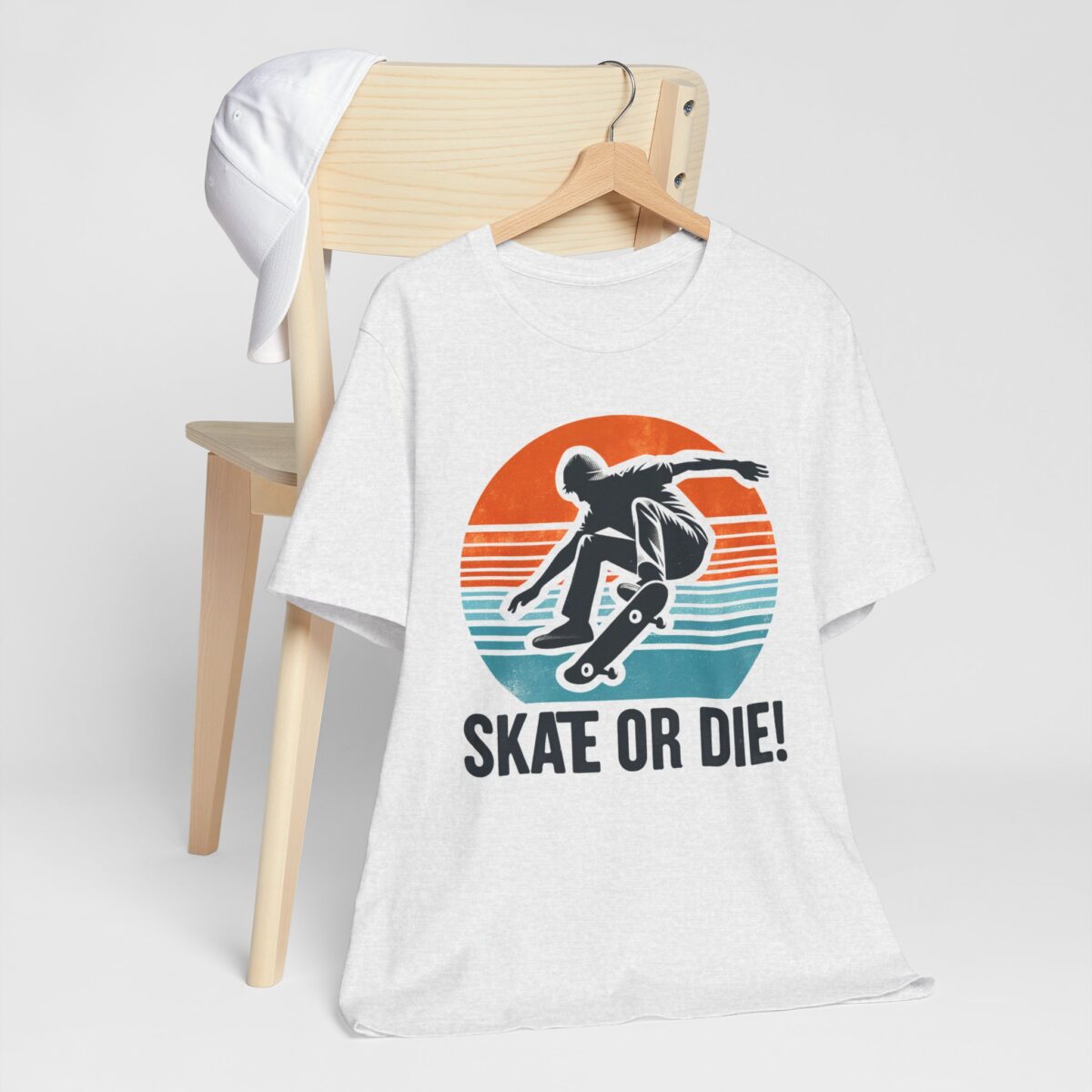 Introducing the “Skate or Die” T-Shirt – a bold statement piece for those who live life on the edge and fully embrace the skateboarding lifestyle. This classic unisex jersey short sleeve tee is more than just clothing; it’s a declaration of your commitment to the thrill and freedom that skateboarding embodies. Crafted from 100% Airlume combed and ring-spun cotton, this lightweight fabric (4.2 oz/yd²) provides exceptional breathability and comfort, making it ideal for everything from active days at the skatepark to laid-back hangouts with friends.